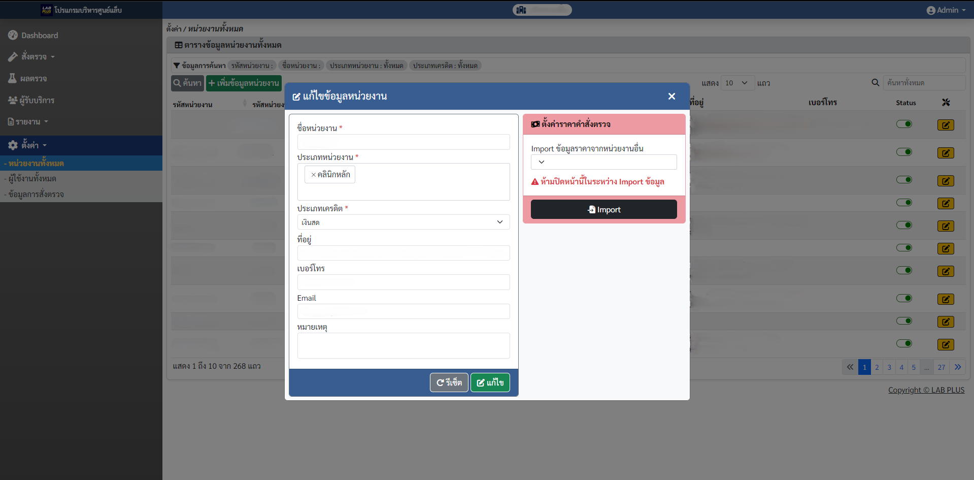 LAB PROMPT มีระบบการจัดการศูนย์แล็บที่ครบครัน ครอบคลุมตั้งแต่การจัดการรายงานผลการตรวจ การบันทึกข้อมูล การจัดการเวชระเบียน และการส่งต่อข้อมูลให้แก่ผู้ใช้บริการ ผู้ดูแลระบบสามารถติดตามและวิเคราะห์ข้อมูลได้แบบเรียลไทม์ เพิ่มประสิทธิภาพและลดข้อผิดพลาดในการจัดการข้อมูล3. ระบบจัดการข้อมูลบน Cloud