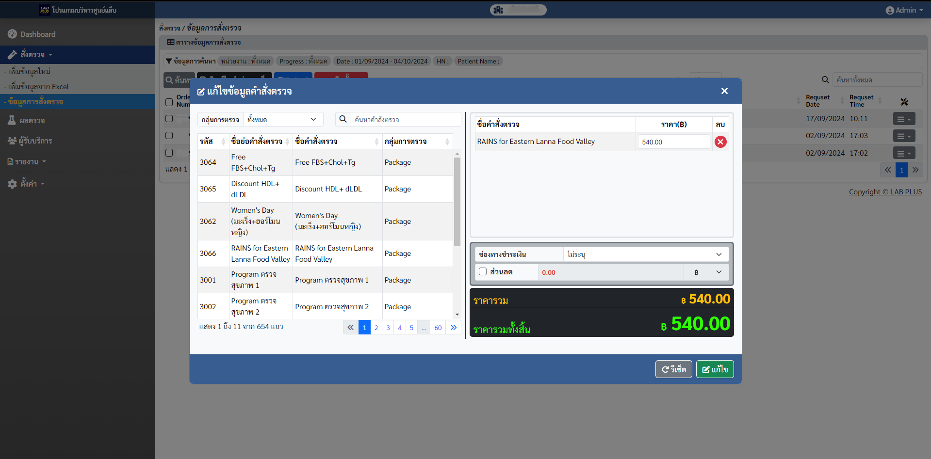 | แก้ไขจัดการราคาคำสั่งตรวจ | ||